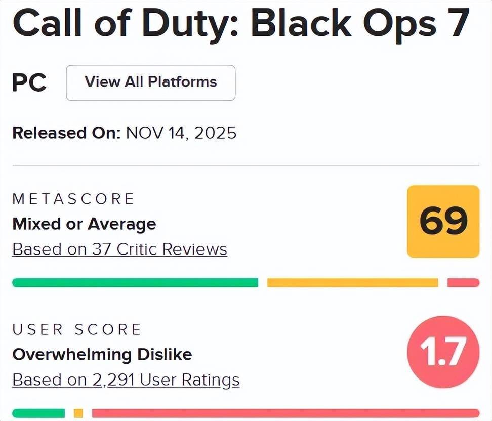 不过就目前看来,大家今年对这个决策不算满意,BO7目前在MC上的用户评分只有1.7。