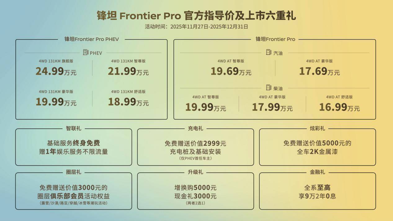 一台能够满足从工作到玩乐全场景需求的皮卡,正在打破商乘边界。锋坦Frontier Pro的出现,或许将引领皮卡市场从“实用工具”到“生活伙伴”的转变。正如一位业内人士所言:“当皮卡不再只能拉货,还能拉风的时候,这个市场的想象力才刚刚开始。”