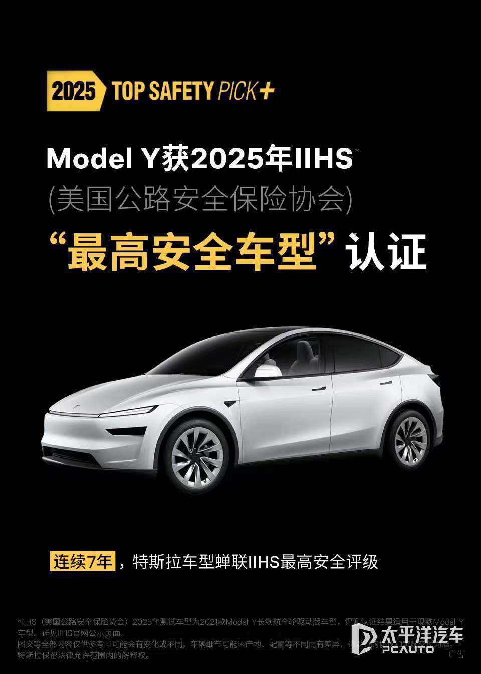 【太平洋汽车 新车频道】近日,特斯拉官方宣布,旗下车型Model Y获2025年Euro NCAP(欧洲新车安全评鉴协会)五星安全评级/2025年ANCAP(澳洲新车安全评鉴协会)五星安全评级/2025年IIHS(美国公路安全保险协会)“最高安全车型”等多项安全认证。