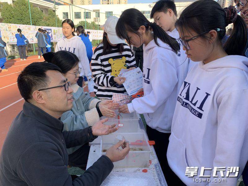 记者在现场看到,本次学科节别出心裁地设置了“展区”与“游戏”两大板块。在七大展区,学生沉浸于语文书写的笔墨风骨、地理创作的山河格局、历史文创的湖湘韵味、生物模型的精密奥秘、国风绘画的传统之美以及政治法治的文明之思。而另一边的游戏区气氛更为火热。同学们手持精心设计的“闯关卡”,在不同学科的知识海洋中穿梭。“飞舞的泡腾片”“静电章鱼”“数运投壶站”等涵盖化学、物理、数学的趣味实验与益智游戏,让学生们玩得不亦乐乎。大家有序参与一个个挑战,每完成一个实验,脸上都洋溢着成就感与喜悦。